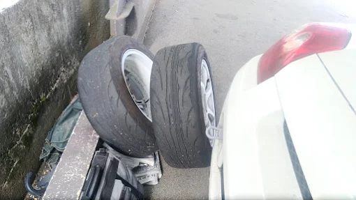 | 1本目でタイヤがこうなってしまったので・・・ |